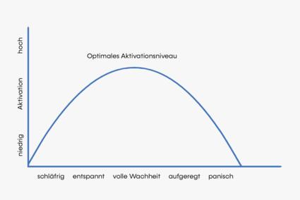 Das Yerkes-Dodson-Gesetz besagt, dass zu jeder (Leistungs)anforderung ein optimales Aktivationsniveau passt. Das bedeutet auch, dass es für jede Anforderung zu viel oder zu wenig Aktivierung geben kann. Die Beziehung zwischen Erregung und Leistung ist daher umgekehrt U-förmig. Je nach Schwierigkeitsgrad der gestellten Aufgabe kommt es mit Zunahme der Aktivierung zu einer Leistungssteigerung. Bis zu einem gewissen Punkt - dem Aktivationsoptimum. Übersteigt oder untersteigt die Aktivierung dieses Optimum, kommt es zu einem Leistungsabfall. Bei welcher Erregung dieses optimale Niveau erreicht wird, ist von Person zu Person verschieden und von der Aufgabe bzw. Sportart abhängig.